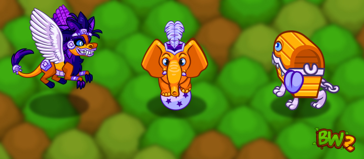 Three new pets can be picked up April 19th to 22nd in Pet Packs bursting with goodies! Want them all? Grab them all for less in the bundle! From left-to-right they are the Bush Buddy, Kitsune Kit, and Megalodon Pup!