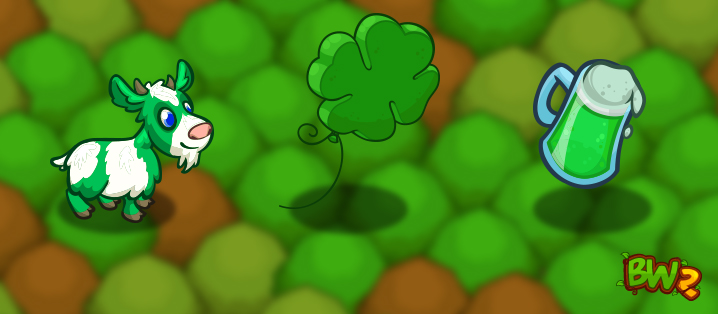 Three new pets can be picked up March 15th to 18th in Pet Packs bursting with goodies! Want them all? Grab them all for less in the bundle! From left-to-right they are the Green Spotty Goat, Shamrock Clover Balloon, and Green Beer!