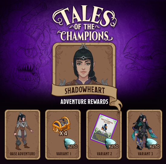 - Rewards: Shadowheart's Multiversal Allies Feat, which increases the damage of all Champions by 20% for each unique species in the formation, and 250 Corrupted Gems